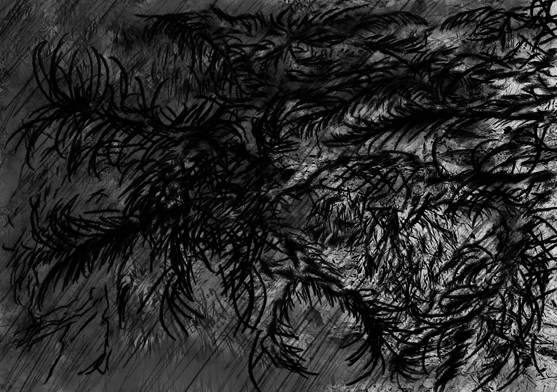 materials: mixed media on paper / photographic, negative, charcoal, granite, oil